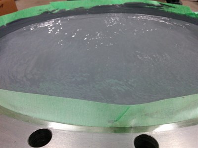 The application was carried out in accordance with Belzona Know-How System Leaflet HEX-3 for erosion/corrosion resistance coatings. Masking tape was placed at the outer edge of the rebate grooves in order to highlight the area to be coated and to give a neat and clean finish. Then, the selected Belzona product was mixed and an even coat was applied at the specified thickness, using stiff short bristled brushes. Then, it was made sure that the coating was finished into the rebate grooves. Wet film thickness gauges were used to ensure the recommended film thickness was achieved. The masking tape was removed immediately. Allow to cure before applying a second coat, where specified, of the selected Belzona product, again ensuring that it is correctly finished within the rebate grooves.